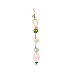 The cute oblong Rose Quartz Earrings are cute casual earrings for springtime. Along the lavender cord, these earrings have three spherical jade beads. Dangling at the bottom of the drop earrings is a rose quartz charm on each one to pull it all together. Silver ear hooks secure the earrings to the lobes.