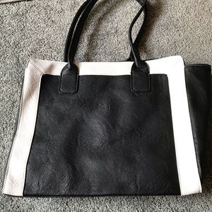Adorable black and white tote / handbag women’s. Good condition. Tons of life. No name barns. Approximately 13” across by 11” tall.