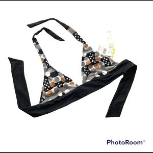 Cute bikini top Perry Ellis triangle Halter Black gray size Medium Polka Dot nwt