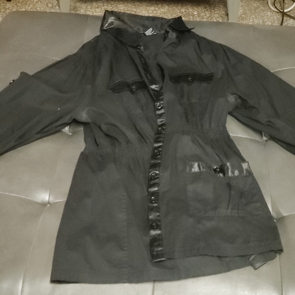 What a gorgeous black shirt w/satin accents. Great paired with leggings.