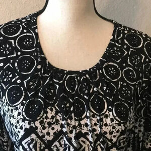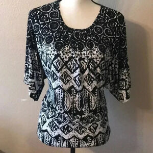 Black and white top with Dolmon sleeves, super comfy, not fitted.