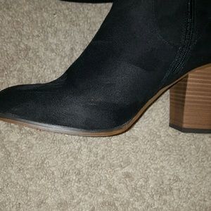 Only worn twice! Had to scuff up the bottoms so they wouldn't be slippery. There is a little brown mark on the left inside boot due to them rubbing together. These are not wide calf boots..