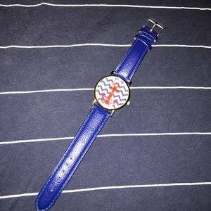 An adorable little nautical themed watch from Geneva! Originally won at a party at my old work, and I don’t really wear it much anymore. The band is imitation leather and does have some creases on the back.
