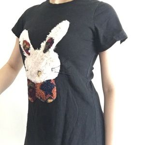 T shirt dress in cotton with furry bunny details. Size S (tags removed). In good condition. Length approx 27"