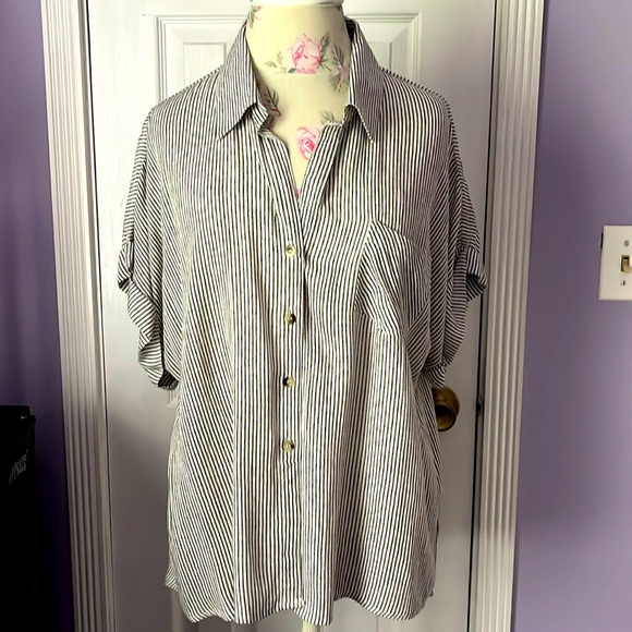 Short sleeve light weight button down blouse, lightly used Pit to pit measurement - 23 inches