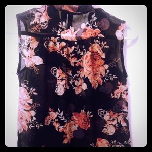 Button down, sleeveless top. Small. Worn once. Tag says made in India. Skulls and pink rose design.