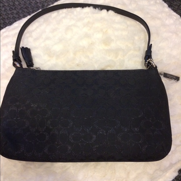 Black top zip Coach clutch. Inside zipped pocket. Exterior pocket.
