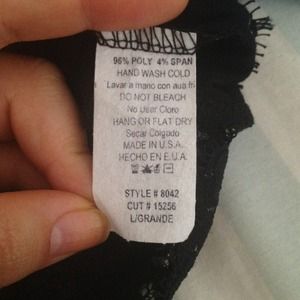 Size L, but because of its elastic band it could comfortably fit various sizes (approx. sizes 6-12). There's a short opaque layer underneath and a longer sheer lace layer on top. Worn once so it's in good (but slightly worn) condition. It's made of soft and breathable fabric so it's great for warm weather!