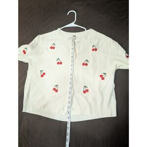 Cute cream short sleeve button cardigan by Bbonlinedress w/cherry embroidery XL