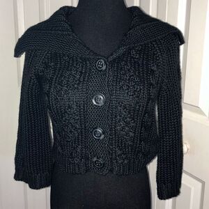 Cute cropped cardigan by Express in size small. 71% acrylic and 29% wool. Gentle used condition.