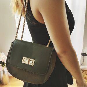 Two toned olive green crossbody purse with convertible chain straps. New with tags. Perfect for fall!!