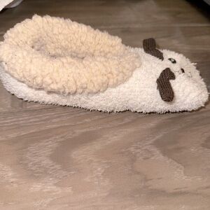 Cute dog slipper socks their fluffy texture, brown ears, embroidered face s/m