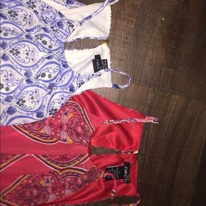 The red one I wore once, the blue one has never been worn. Perfect condition. I bought them from rue 21 for 15 dollars each. They're both the same style and same material, just different patterns. Feel free to message me if you want to break the bundle up.