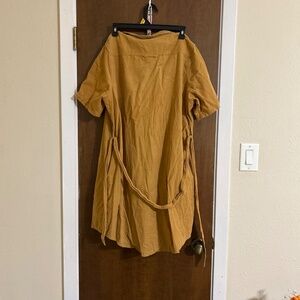 Super cute yellow dress. Thin coyduroy material, no snags button up with a ribbon tie around the waist.
