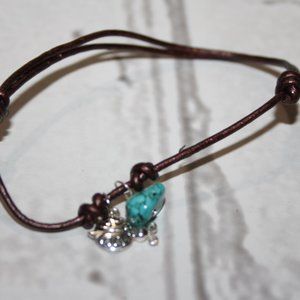 Cute faux leather bracelet with turquoise and ladybug charm adjustable