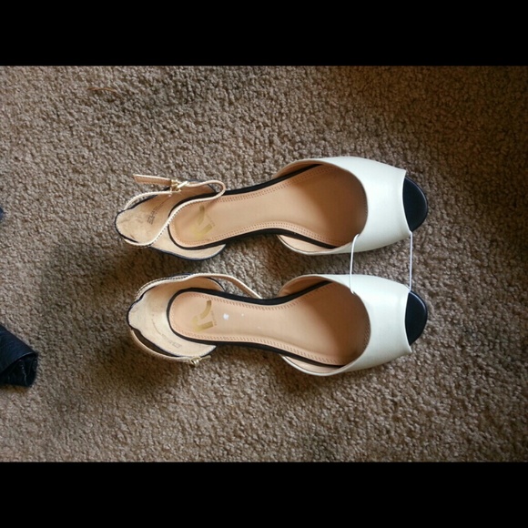 Black and white flats with gold strap, never worn, says it's a 6.5 but definitely fits like a 7