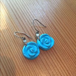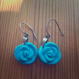 These are cute dangly turquoise flower earrings. 🌼