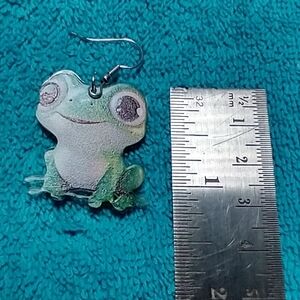 Cute frog wire dangle earrings green white black