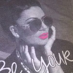 Has a girl on it with lip stick has a quote that say "Be your own kind of beautiful