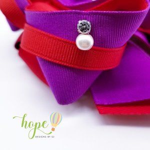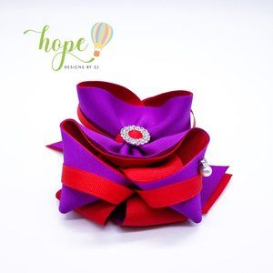 Cute hair bow for this precious holidays. Purple and red with rhinestones.