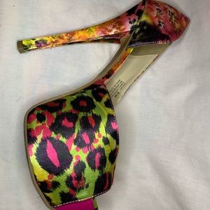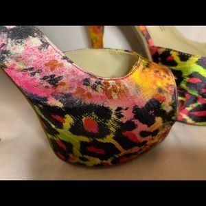 ***cleaning out my closet.. used item*** I don’t remember where I got these from but they are multicolored animal print 2in platform 5 1/2 inch heel. Worn maybe 3 times