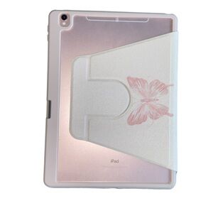 Cute iPad Pro or Air 3 (10.5 inch) Case 720 Degree Rotating Kickstand with Double-sided Painted Acrylic Crystal Clear Back Cover with Pink Butterfly Design and Pencil Holder. Shockproof. It's brand new.