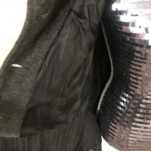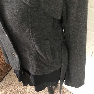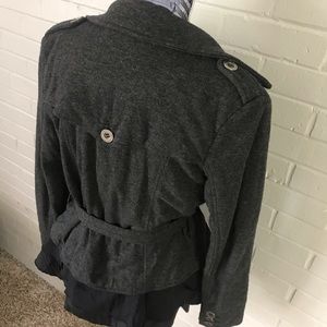 Soft button up jacket with tie belt. Pretty gauzy ruffle detail at bottom. EUC and smoke free.