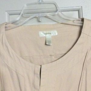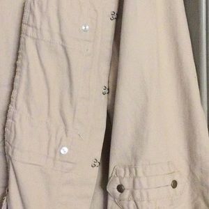 Fun jacket, with hook front, fun buttons. Wear over turtle necks, tees or tanks. 98% cotton, 2% spandex. Machine wash cold, tumble dry low.