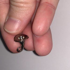 This little pewter charm is shaped like a witches hat. The tip of the hat is curled perfect for a bail to be placed in there to wear it as a pendant, charm on a bracelet, and so much more. This is a simple little pewter charm.