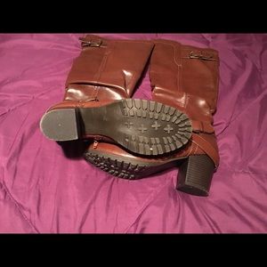Cute mid-caf brown heel boots Sz 7