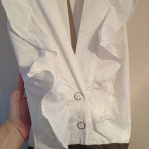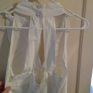 Super cute worn once! Military green bottom with pockets. White v neck top with ruffles in the front and cut out back. Ties at the waist in the back.