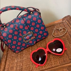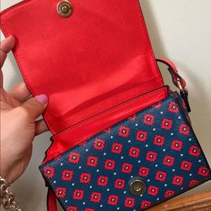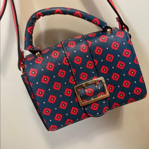 Cute mini pattern purse with red interior and gold snap closure detail