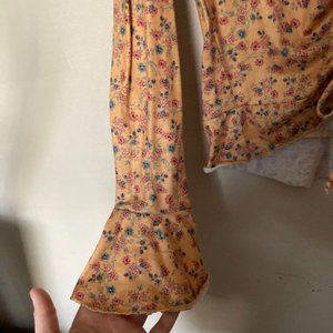 Cute orange floral cinched crop top with flare sleeves. Great cut and love the cinched waist so you can go as high or low as you would like.
