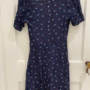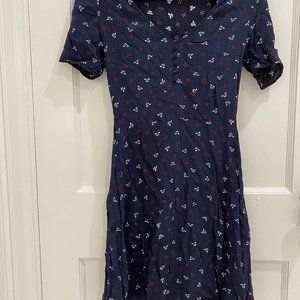 Cute navy H&M dress with white and red floral pattern.