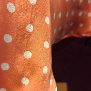 Peach color with small white dots. Great for summer with light, satin like flow. Cute back opening for style and comfort on hot days. Good condition, see pictures for two pulls on fabric. Size xs. 🌸🌸🌸