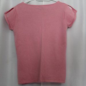 Cute pink GAP short sleeve sweater top. Ruching in front. Good condition. No rips, stains or tears. From a smoke free and pet free home.