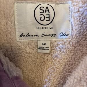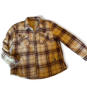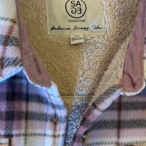 Cute pink white plaid sherpa button up with pockets Large
