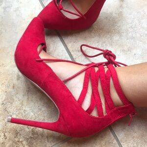 Cute red lace up heels