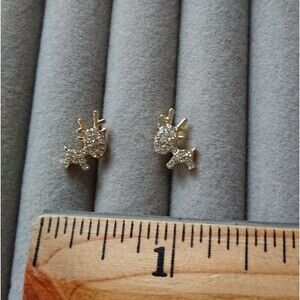 Cute reindeer Cubic Zirconia Stud Earrings - Gold tone