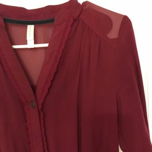Cute burgundy romper with a touch of lace and semi-sheer shoulders- super cute!!