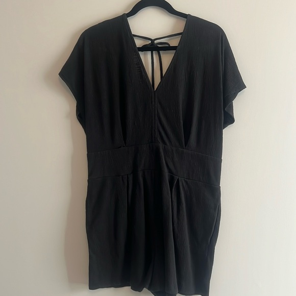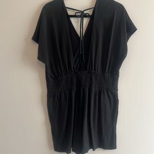 Super cute and comfortable romper with pockets! Tie back makes it super early to get on and off. Elastic waist back with wide waistband makes for a very flattering fit.