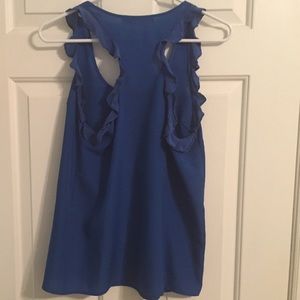 Great for business casual. Razorback tank top with calm ruffles around the arms. Slightly worn. In great shape. 100% polyester