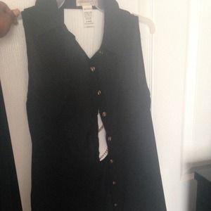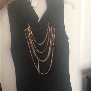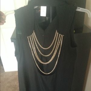 Black, sheer, shirt-dress originally from Agaci! It has really cute gold chain detailing on the back and I love it, I just haven't found a successful way to style it :/.. It's a size small but could definitely fit a medium!!!