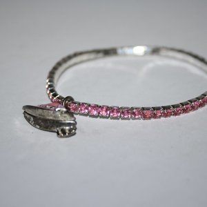 Cute silver and pink rhinestone hat charm bracelet 7"