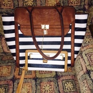 Cute nautical purse and wallet purse has a stain on inside where a pin broke pic to see included
