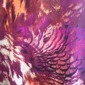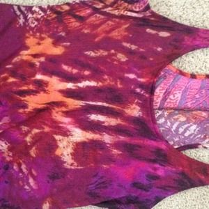 Size medium dress. Short in the front long in the back. Made from spandex material worn once. Beautiful summer cord purples pinks and oranges.