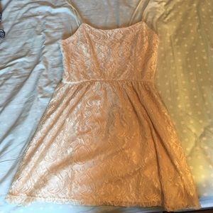This lace dress is very comfy and would be cute for the summer! Only worn one time because didn't like where it fell on me. Im 5'10" with verry long legs lol. Belt not included.