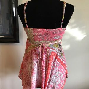 This is a really cute top that I only wore a couple times. I ripped the tag out so I'm not sure of size but pretty sure it's a medium. The straps are adjustable and the back has tie strings for a form fit.