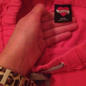Beautiful pink sweat pants also can be capris with black hearts and little diamonds in the hearts only worn twice