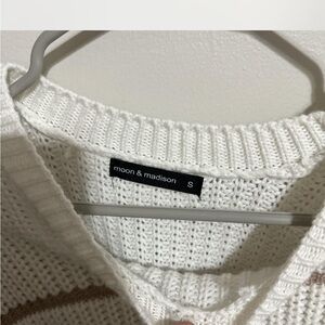 White and tan sweater. I love it just have not worn it this winter. From mood and madison it id in perfect condition